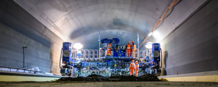Unser «T-Rex» ist wieder im Einsatz: Der CAT 345c mit Schwenkkabine wurde von den Technischen Diensten der KIBAG auf die Bedürfnisse des Kieswerks konfiguriert. Nach einigen Umbauten, der Reduzierung auf die notwendigsten Funktionen und Anfertigung einer Spezialkonstruktion, bearbeitet der Bagger mit seinem 36 Meter langen Arm mit Hochdruck den dicht gelagerten Wandkies im Werk Stadel.