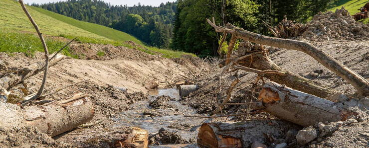 Die KIBAG Huttwil realisiert eine naturnahe Bachlandschaft