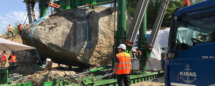Der Autobahnanschluss Muri wird derzeit von Grund auf saniert. Kernstück des Bauprojekts ist ein neuer Kreisel, der die Autobahn besser mit dem restlichen Strassennetz verbindet. Dafür muss jedoch der Ausfahrtsstreifen verlängert werden. Ein riesiger Findling, der sich genau an der Stelle befand, wo die Autos künftig von der Autobahn ausfahren, wurde deshalb mit massivem Aufwand um 2,4 Meter verschoben.