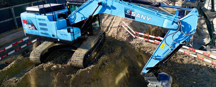 Als innovativ führendes Unternehmen im Bausektor setzt die KIBAG – nebst zahlreichen weiteren Massnahmen – auf die Elektrifizierung des Maschinen- und Fuhrparks. Seit mehreren Wochen testen wir in verschiedenen Abteilungen und Einsatzgebieten der KIBAG einen batterieelektrisch betriebenen Sany-23-Tonnen-Raupenbagger. Diese Maschine ist eine der ersten ihrer Art in Europa und vor allem das erste Modell dieser Klasse in der Schweiz.