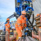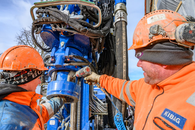 Aufgrund der Rückzugskraft von 18,5 Tonnen sind Bohrungen von bis zu 400 Metern Tiefe möglich. Wegen ihrer sehr kompakten Bauweise ist die Geotec Rotomax XL-GTi gerade im Sanierungsbereich bei engen Platzverhältnissen sehr geeignet. Sie eignet sich aber genauso für Hammer- sowie Ton-Spülbohrungen – ebenfalls bis 400 Meter Tiefe. Auch für lange Verrohrungsstrecken – sollte der Fels mal tiefer als 100 Meter reichen – ist die Maschine sehr geeignet. Mit 13,5 Tonnen Gesamtgewicht ist sie zudem vergleichsweise ein Leichtgewicht.