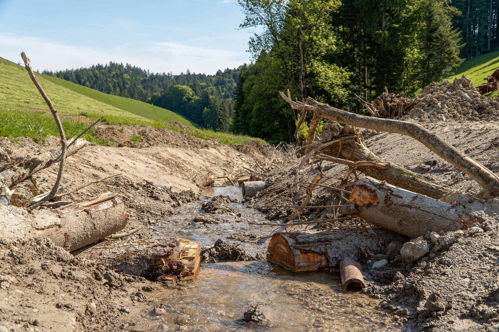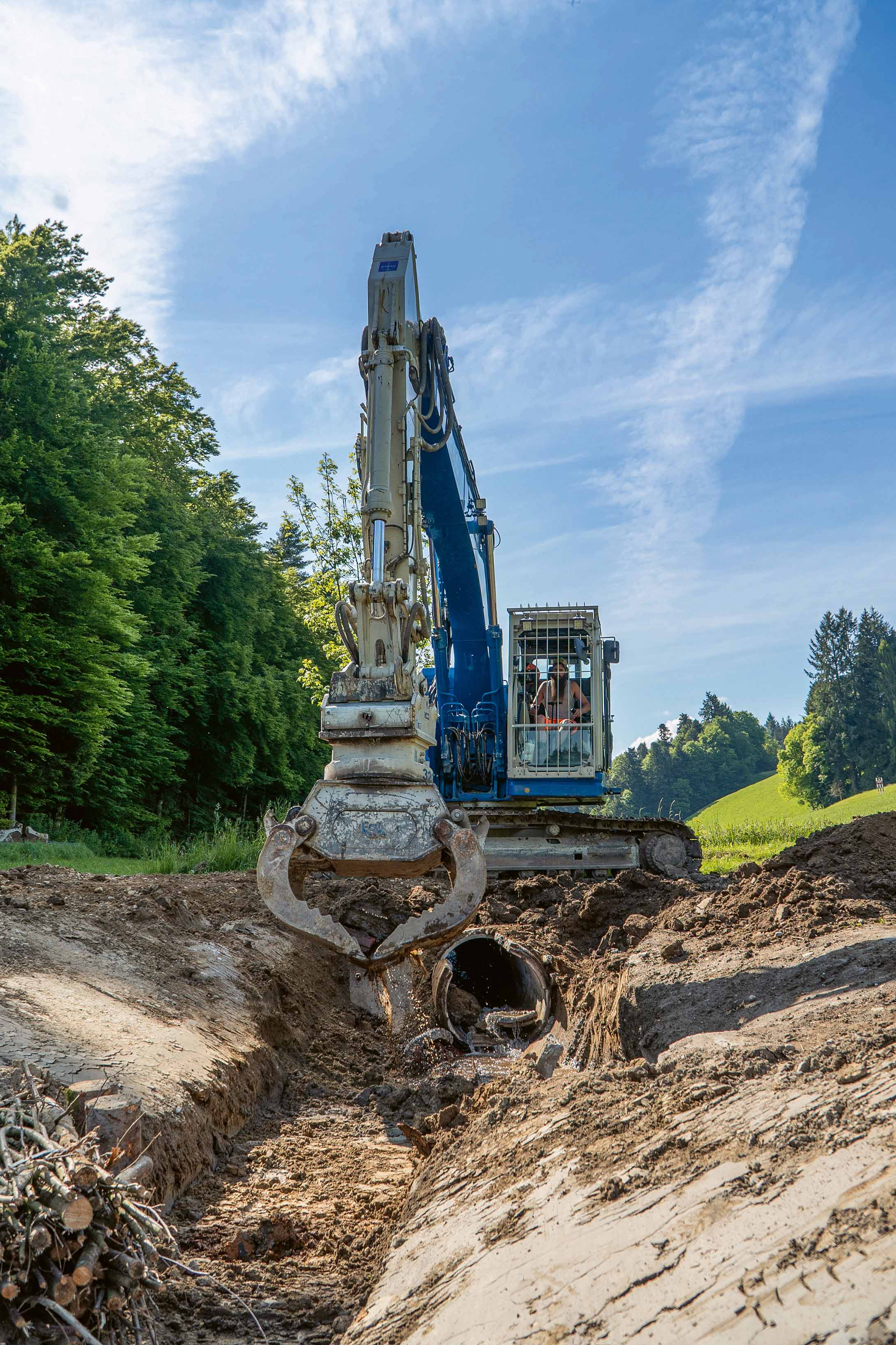 Die Region Rohrbachgraben bei Huttwil war in der Vergangenheit bereits mehrfach durch Hochwasser und Überschwemmungen betroffen. Seit Januar laufen die Arbeiten für ein neues Hochwasserschutz- und Renaturierungsprojekt.