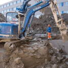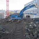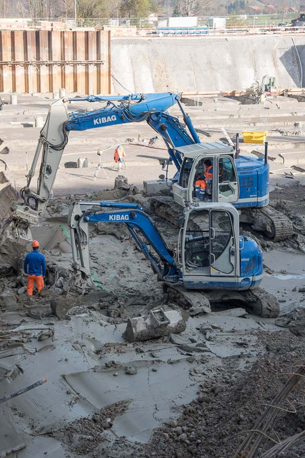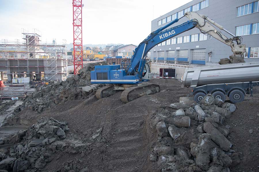 Die KIBAG St. Gallen war von Mai bis Dezember 2017 auf der Baustelle. Zunächst wurde abhumusiert. Danach waren wir mit dem Abtragen des Unterbodens und Aushubmaterial beschäftigt. Anfang Juni erstellte die KIBAG Spezialtiefbauabteilung eine Spundwand von 2700 Quadratmetern. Im Juli und August haben wir rund 17'500 Kubikmeter loses Kiesmaterial ausgehoben und abgeführt, welches wir anschliessend in unserem Kieswerk in Weinfelden aufbereitet haben.