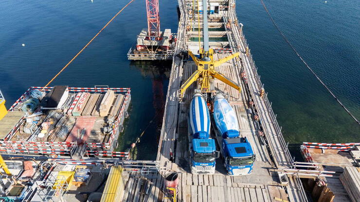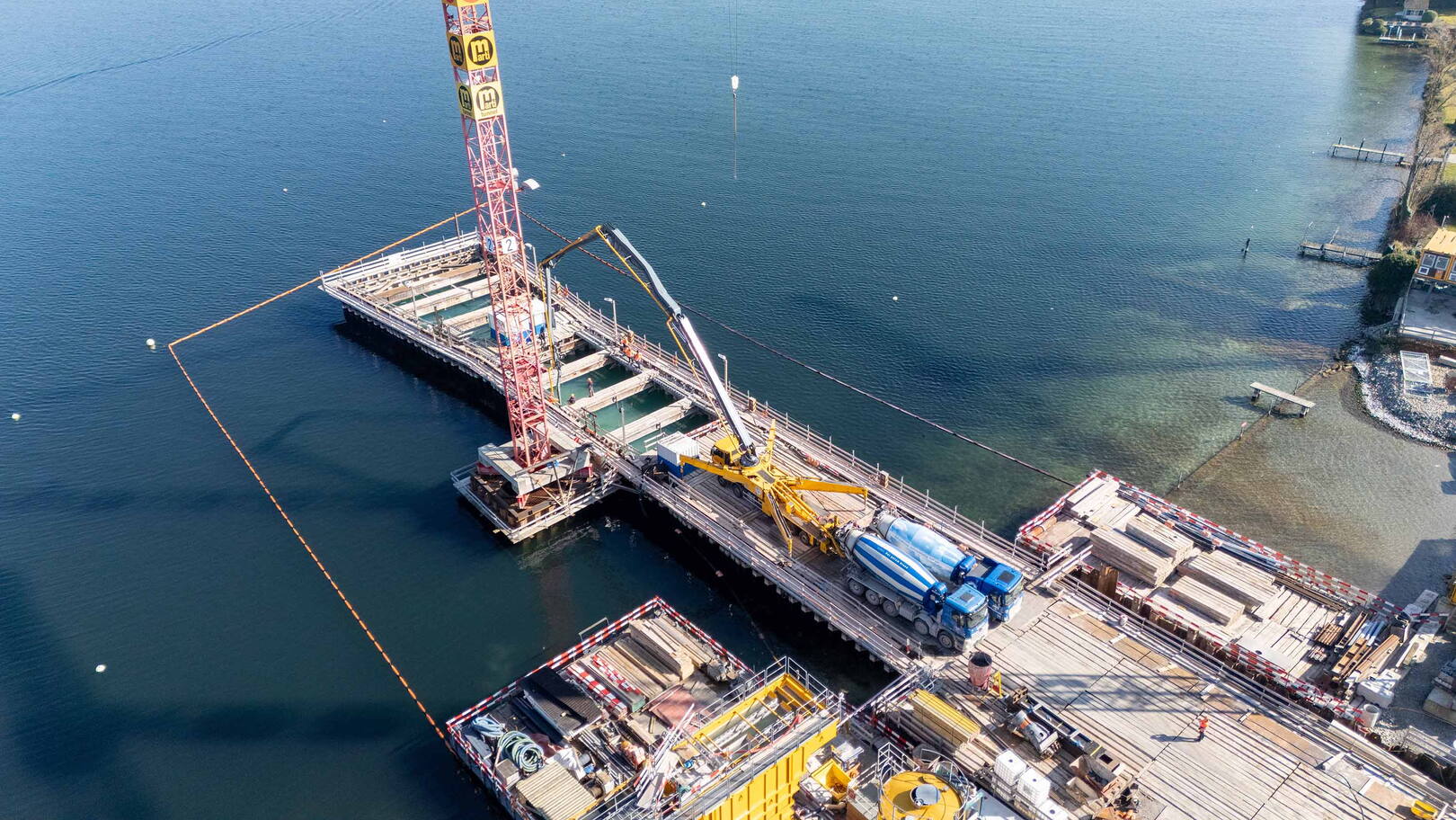 Inzwischen konnte bereits die zweite Etappe abgeschlossen werden und die anfängliche Anspannung, ob denn auch alles klappen würde, ist einer gewissen Routine gewichen. «Unterwasserbeton macht man nicht jeden Tag. Und der Beton reagiert natürlich ganz unterschiedlich auf die Wassertemperatur. So musste unser Labor im Winter bei kaltem Wasser die Rezeptur anpassen», führt Agosti aus. Bisher habe aber alles sehr gut funktioniert und der Kunde