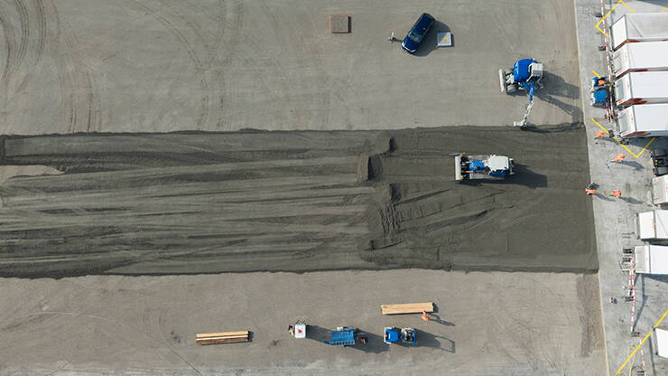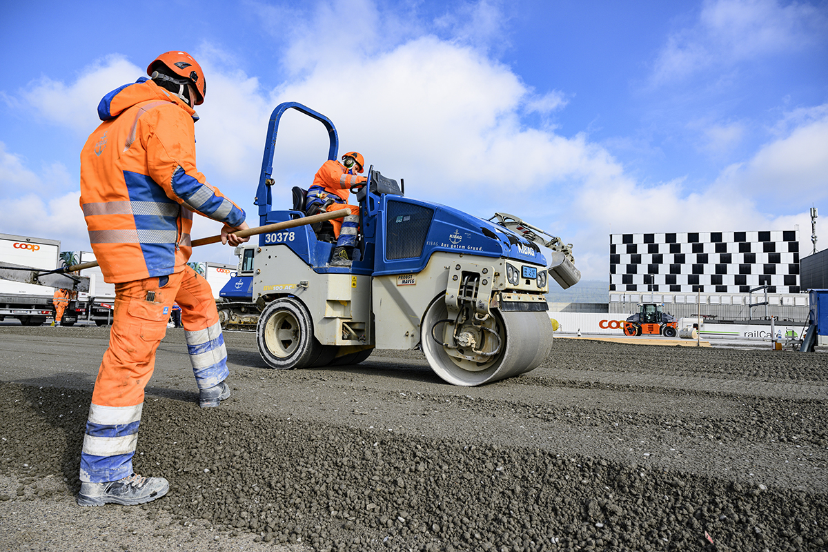 Im Industriegebiet von Hunzenschwil und Schafisheim plant Coop die Erweiterung ihres bestehenden Verteilerzentrums. Eine Gruppe der KIBAG Langenthal baut dazu auf einer Fläche von 11'000 Quadratmetern Walzbeton ein.
