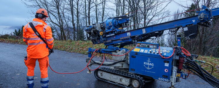 En prévision de la construction des nouvelles stations supérieure et inférieure du téléphérique Morschach-Stoos, des forages de sondage doivent être réalisés. Pour transporter la foreuse jusqu’à la station supérieure de Stoos, interdite aux véhicules, il a fallu l’acheminer sur la plateforme de transport du funiculaire le plus raide du monde.